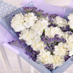 гвоздика белая – 7 шт., зелень декоративная (лимониум фиолетовый), упаковка, лента